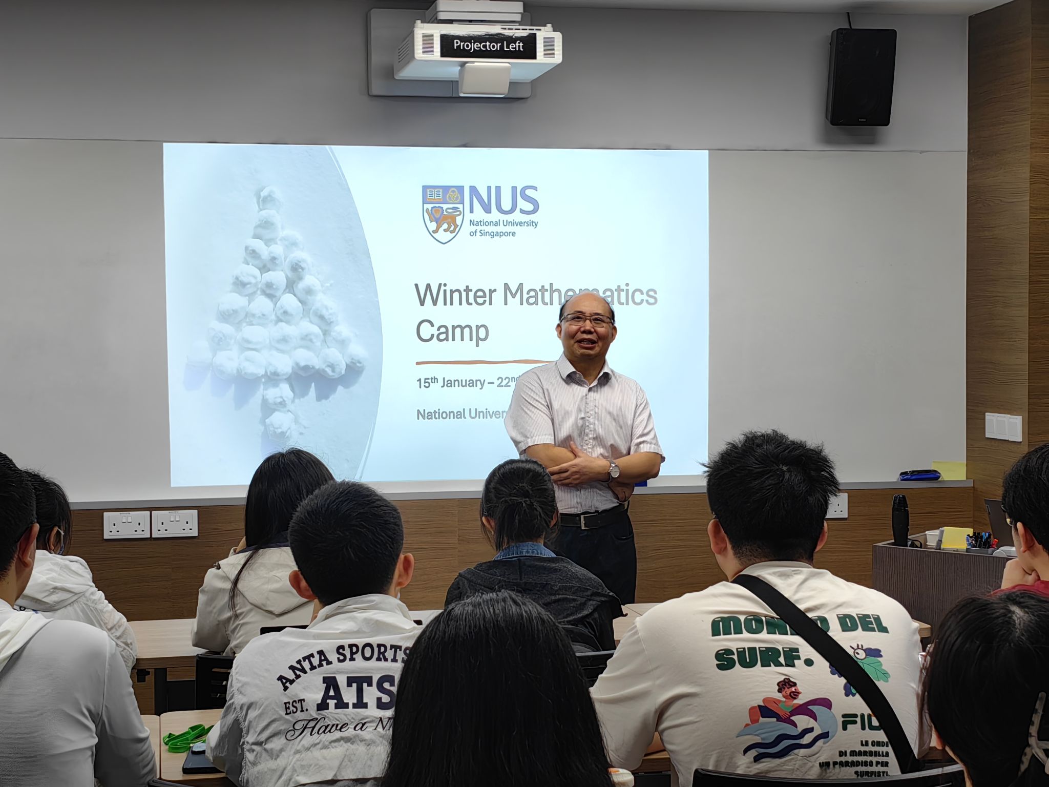 1月15日,“智慧数理”寒假研学项目课程讲授正式开始,新加坡国立大学理公司助理教授王飞老师主持开营仪式,希望同学们在新加坡国立大学学到本领,收获友谊。新加坡国立大学理公司副经理包维柱教授为同学们做了欢迎演讲,对同学们的到来表示热烈的欢迎和衷心的期许,祝愿同学们在接下来的课程中有所收获,学以致用,也希望在新加坡的研学之旅能为同学留下难忘的回忆。