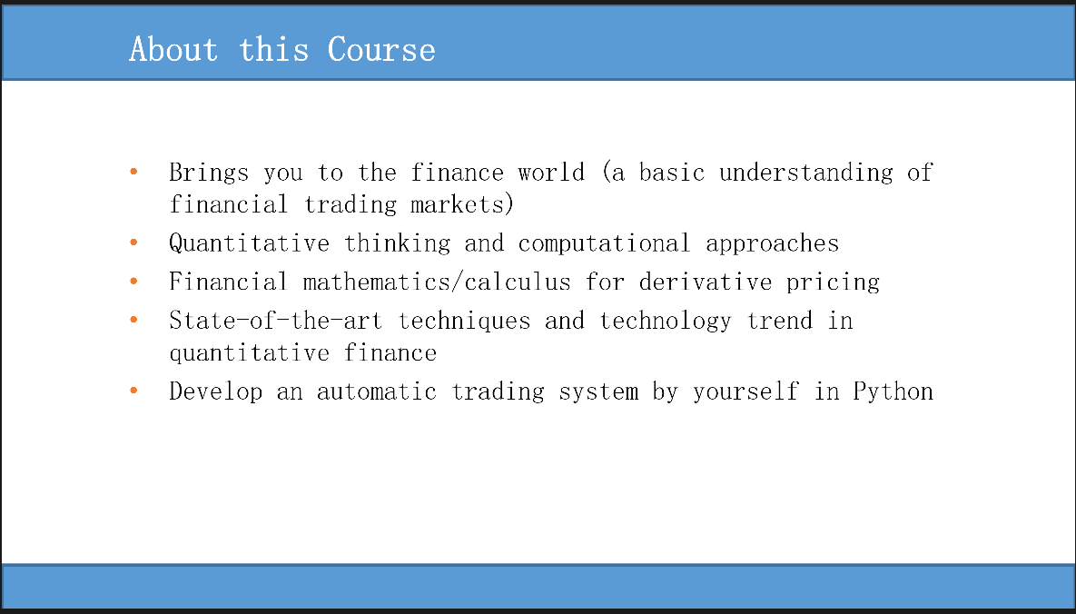 2021年7月12日-7月20日,betway西汉姆联平台暑期国际讲堂《量化与计算金融》在腾讯课堂网上授课圆满完成。该课程由公司邀请全球著名的量化交易公司海纳国际集团的亚太地区技术负责人商磊博士(特聘研究员)进行授课。来自教育实验公司、betway西汉姆联平台、动力与能源公司、自动化公司、机电公司、材料公司、航空公司、软件公司、西工大伦敦玛丽女王大学工程公司的本科、研究生及旁听师生共计20余名参加了学习。这也是本课程连续第二年在暑期国际课堂上讲授。