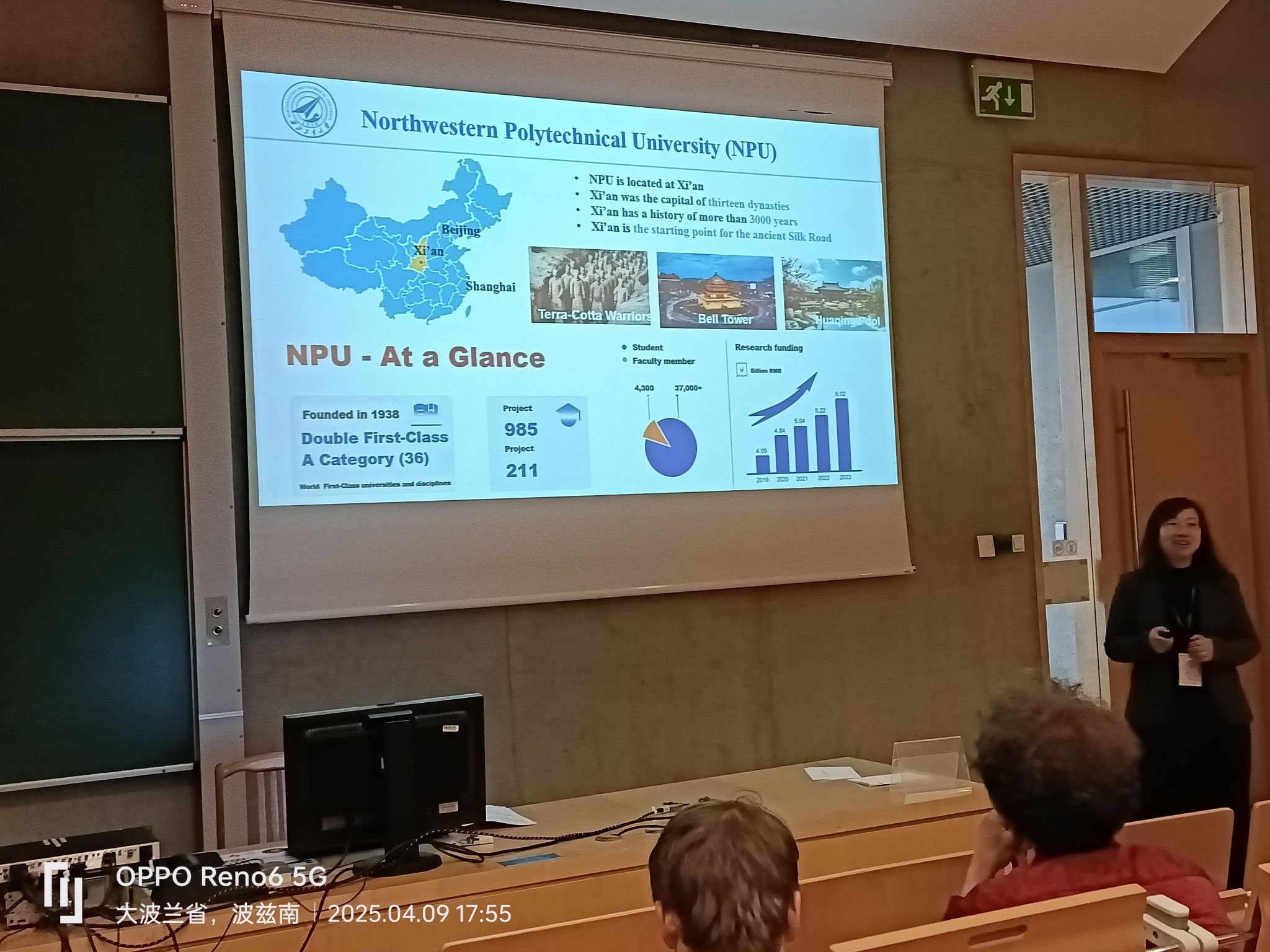 4月7日至10日,代表团赴波兰波兹南参加“第95届国际数学与力学年会”,并在分会场做报告、进行引才招聘宣讲。会议期间,代表团结识了来自波兰数学研究院、慕尼黑工大、德国亚琛工业大学等众多欧洲高校的职工及博士生。聂玉峰经理、都琳经理和国际交流与合作办公室主任肖曼玉教授与这些职工逐一深入交流,详细介绍西工大的引才政策。职工们对入职西工大表现出浓厚兴趣,为后续人才引进工作奠定了良好基础。