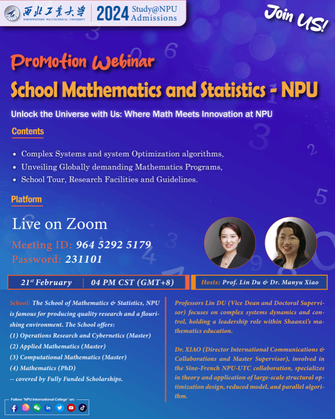 In order to further enhance the quality of international student recruitment and increase the international influence of the school, on February 21, 2024, Vice Dean Du Lin, Director Xiao Manyu from the Office of International Collaboration & Cooperation, and Secretary Li Zhuorong participated in the school's 2024 international student recruitment global live streaming event. The recruitment event was hosted by Miss. Yang Jiayi from the International College, conducted entirely in English, and attracted nearly 30 international students from all over the world.