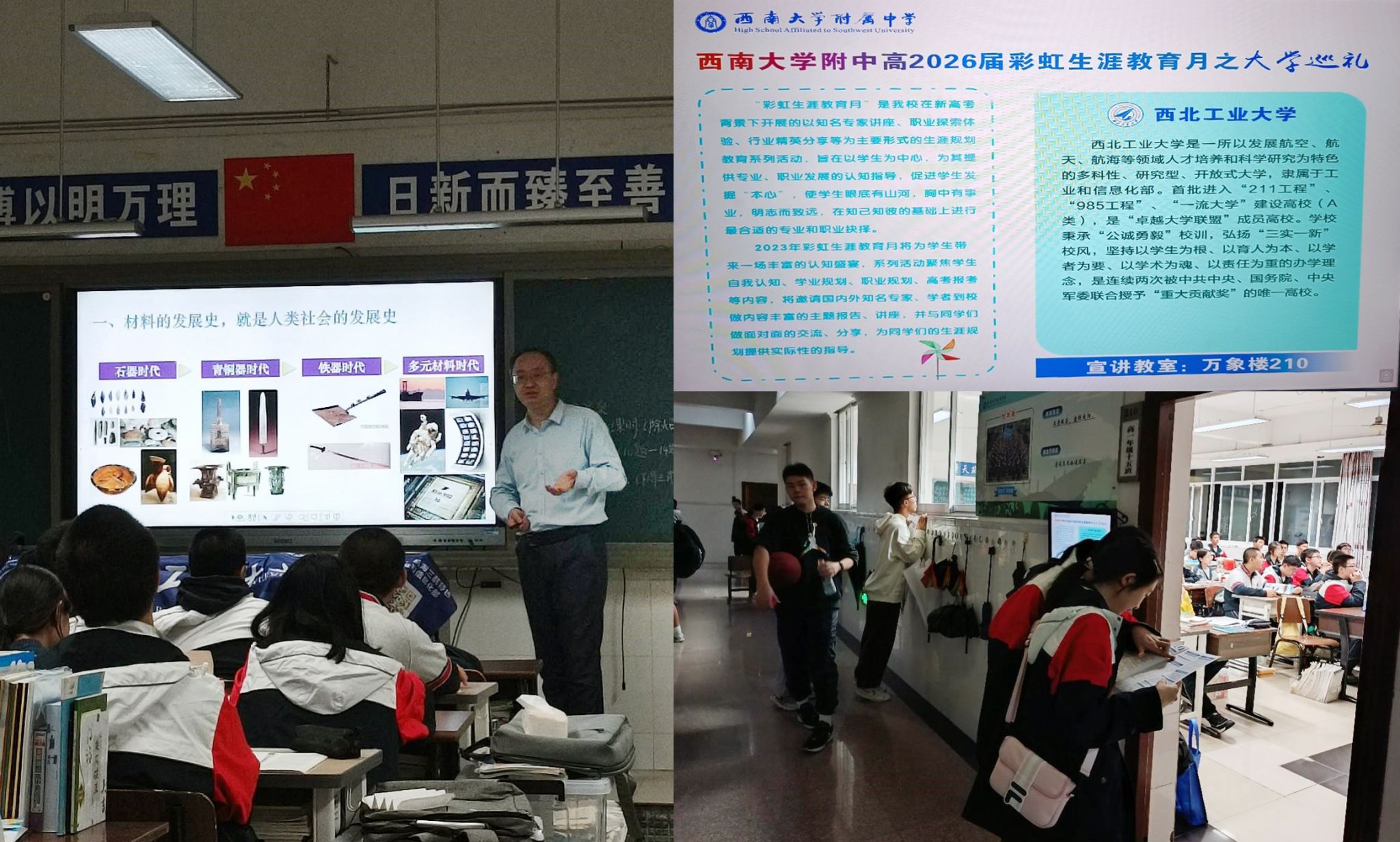 11月10日,应西南大学附中邀请,材料公司王永欣副经理、betway西汉姆联平台重庆招生组王振海老师前往重庆市西大附中参加高2026届彩虹生涯教育月大学巡礼活动并开展科普讲座等招生宣传工作。