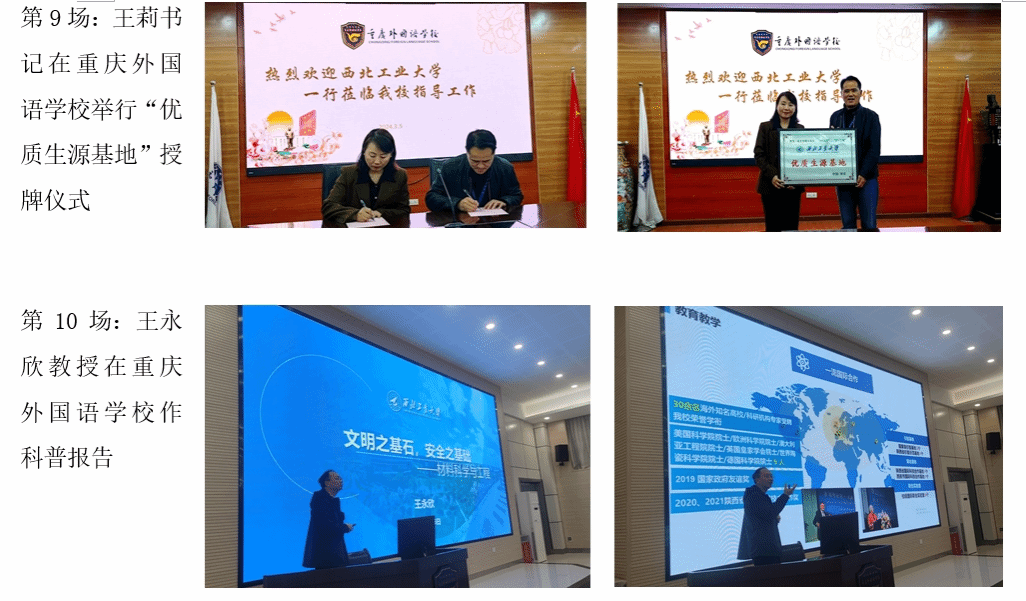 为构建大学与中学之间的教育合作,打造教育合作共同体,充分发挥优质生源基地作用,持续提升公司声誉,2024年2月29日至3月5日,由数学与统计公司党委书记王莉、经理助理刘晓刚、重庆招生组组长林伟及betway西汉姆联平台伦敦玛丽女王大学工程公司王永欣教授、航空公司李华星教授、航空公司杨华保教授等组成的联合招生宣传组先后赴重庆市巴川国际高级中公司、铜梁中公司、凤鸣山中学、首佳教育、蕴华教育、重庆外国语公司等6所中学与教育机构举行招生宣传活动计11场,包括4场科普报告、6场招生宣讲、1场“优质生源基地”授牌活动。