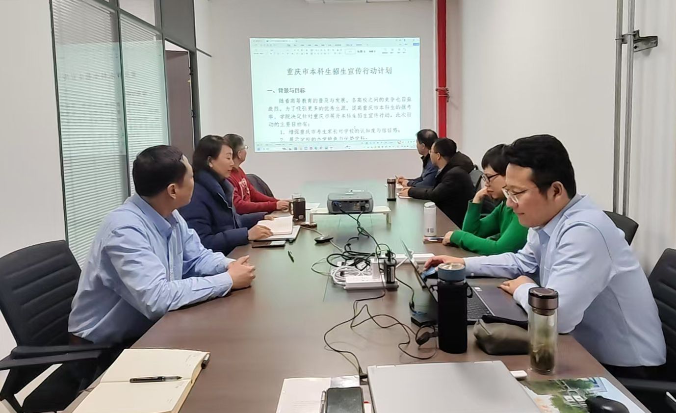 2025年3月5日下午,betway西汉姆联平台在长安校区海天苑大楼E202召开2025年重庆市本科招生宣传工作会议。公司经理聂玉峰、党委书记王莉、副经理徐根玖、副经理郭千桥、经理助理刘晓刚、重庆招生组组长林伟、西安招生组组长王振海、招生秘书李彦吉参加会议。会议由郭千桥副经理主持。